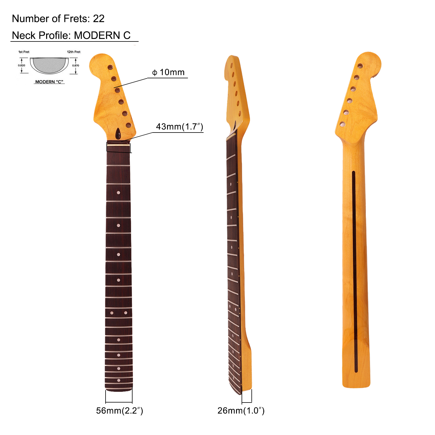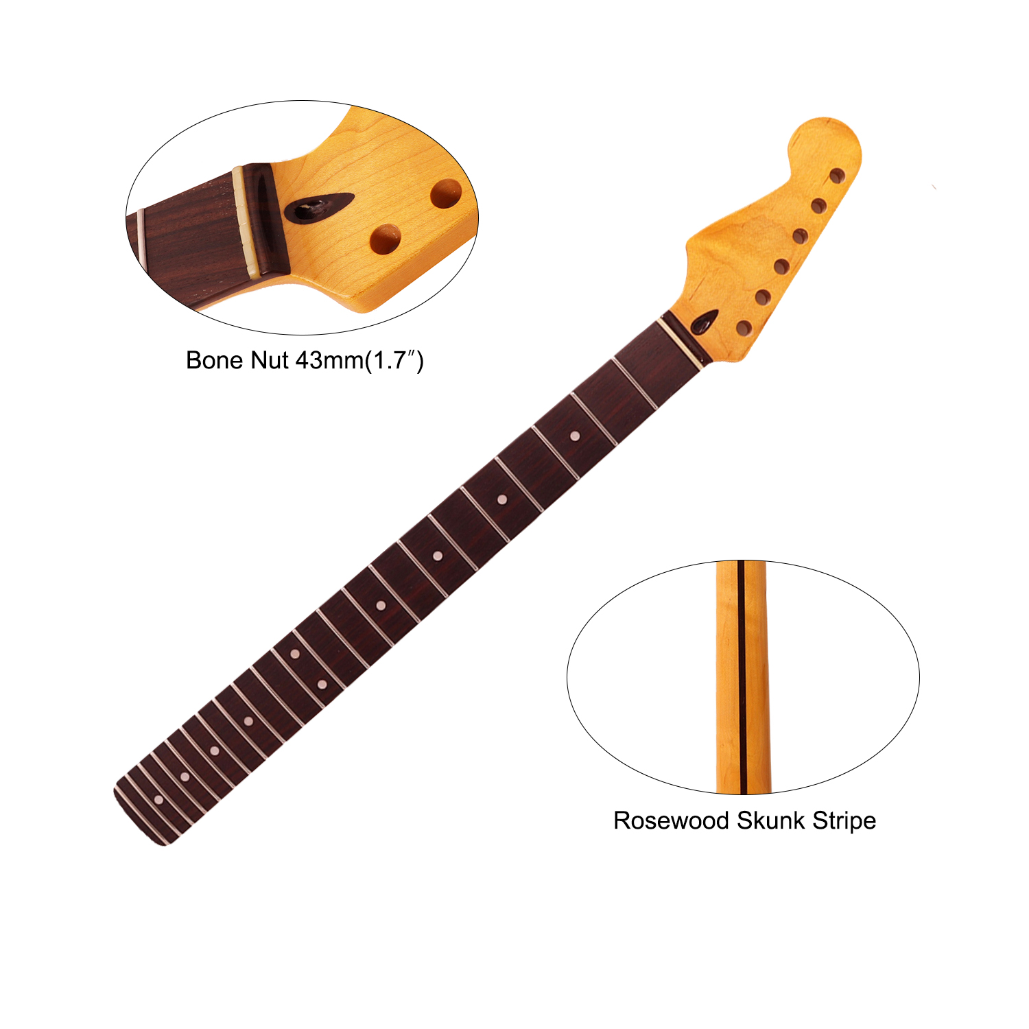 Left-handed Premium Stratocaster Guitar Neck Rosewood Fretboard Maple Neck 9.5" Radius 10 mm Holes 22 Frets Gloss Finish